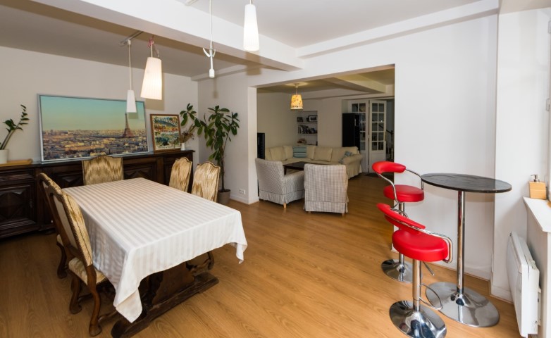 The living room offers ample sitting space and a TV corner, wherefrom you can whatch the 100 international channels from then Internet box, or your favorite Netflix series